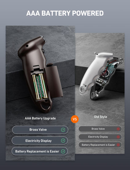 Upgraded Power Supply - Replaceable AAA Battery: Instead of 4 coin cell batteries, 2 AAA batteries are included with this tire pressure gauge. It's easy for anyone to replace with spare batteries, and AAA batteries can last longer than coin cell batteries! Stocking stuffers for men and women. Nozzle easily forms a seal with the valve stem on Schrader valves and Presta stems with valve adaptor if you need, giving quick and accurate readings in 0.1 increments; 4 settings with range: 0-150PSI / 0-10Bar / 0-10Kgf/cm² or 0-1000KPA Simply press "ON/UNIT/OFF" button to turn on the tool, select the range, and automatically shut off in 30-40 seconds to save the power; Non-slip texture makes it easy to hold onto and the ergonomic design is both suitable for men and women's hands Designed to maintain correct tire pressure, reduce tire wear and extend tire life; digital display reading instantly and clearly being shown, no longer do the guesswork of analog gauges Battery included; Perfect car accessories gifts for men; Versatile use for cars, trucks, motorcycles, bicycles etc