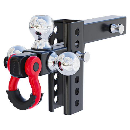 Ayleid Adjustable Trailer Hitch Tri-Ball Mount with Hook&Pin&Rotatable Tow Shackle,Fits 2-in Receiver with 1-7/8-in,2-in,2-5/16-in Hitch Ball [ Hitch ball size ] 1-7/8 inch , 2 inch , 2-5/16 inch , Tow Hook , 3/4 inch D Ring Shackle [ Receiver size ] 2-inch [ Weight rating ] 5000 LBS / 6000LBS / 10000LBS / 12000LBS [ Quality ] Heavy duty black powder coat finish, Silver hitch ball [ Warranty ] Lifetime warranty !