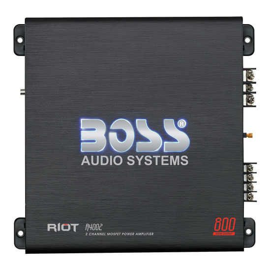Drive your in-vehicle audio experience up a level with the Boss Audio Riot R4002 Class A/B 2-Channel Full Range Amplifier. This 2-Ohm stable amplifier features 800 Watts Max Power with a MOSFET power supply to pump out your playlists. Customize the sound with Fixed High Pass Crossover, Variable Low Pass Crossover and Bass Boost. Control those Bass vibes with the Remote Subwoofer Control. Bridge channels for more power and flexibility. Amplifiers in the Riot Series are perfect for first time car audio buyers looking to add Bass, enhanced sound and performance to their system at an affordable price. Get your vehicle rocking with the Boss Audio R4002. For further product details, please scroll down. Power - 400 Max x 2 @ 2 Ohms, 200 Max x 2 @ 4 Ohms, 800 Max Bridged x 1 @ 4 Ohms Full Range - With a Full Range amplifier you not only have the option to run your speakers, but also your subwoofers Low & High Level Inputs - A low level (RCA) input is measured in voltages. A high level (+/- wire) input is measured in wattages. Both essentially carry signal from your receiver to your amplifier to your speakers Variable Input Gain Control - The gain control is not for adjusting volume. It simply adjusts the amount of signal that is coming from your receiver and going to your amplifier Class A/B Topology - Class ‘A’ amplifiers have enormous amount of current flowing through its output transistors with no audio signal. Class ‘B’ amplifiers have no current flowing through its outputs with no audio signal