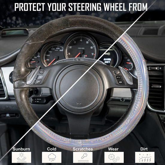 CAR PASS Bling Diamond Colorful Steering Wheel Cover, Holographic