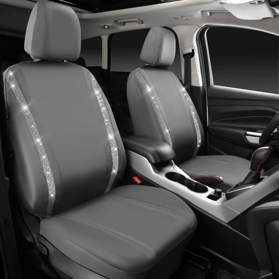 BLING CAR SEAT COVER: Premium Leather with pretty rhinestones Made. Gray leather with shiny rhinestones, perfect for women, girls. Perfectly match your interior look. Ensure your seat covers will last for many years to come. Refresh your interior look. Beautiful design with good quality. SPARKLY BLING DIAMOND DESIGN: The front and rear seats are designed with diamond strips, with beautiful diamonds will not fall off. Refresh your car if you install the Bing Bling Crystal rhinestones seat covers. Fit most seats with low back seats or adjustable headrests. Can be installed with the detachable headrest. AIRBAG COMPATIBLE: Airbag compatible use. Perfectly fit for most of vehicles with the seat cover easy installation design. We have the exclusive patent about the blast of airbag for the seat covers in case of emergence. EASY TO INSTALL: Includes two seat covers and two removable headrests, ideal for the driver's and front passenger's seats in your vehicle. Protect your front seats from scratches, dirt, dander, and spills. Seat covers are removable and washable. no odor. CAR PASS EXCELLENT SERVICE: Our brand is car pass and we offer high quality car seat covers. We put product quality and your trust first. We do our best to provide you with quality service.