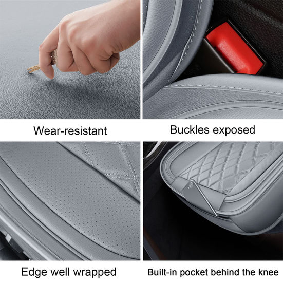 UNIVERSAL FIT: 2PCS front seat covers, which are compatible with most vehicles,such as Sedans, Pickup Trucks,Hatchbacks, Suv, Crossovers, Crew Cab, Vans, Ev.Note: Please enter your model on the product page to check if it fits your car. Premium Material: Car seat cover is made of high-quality leather. Which has good abrasion resistance to protect the seat from being scratched by the key, and it can be easily cleaned. Compatible Airbags: Automotive Seat Covers has been upgraded to a detachable, and the side straps for fixing are almost hidden. The airbag has enough room to stretch and will never be blocked. Maintain Function: Waterproof front seat cover is designed with back pocket , convenient for you to put your belongings; non slip design at the bottom to prevent the seat cover from moving; it is easy to clean no worry about your pet dirty car seat Easy To Install: MIROZO front seat covers is easy to install.It takes 10-20 minutes to install it completely and you car get a new look.installation instruction is attached.you can also see the instruction videos.
