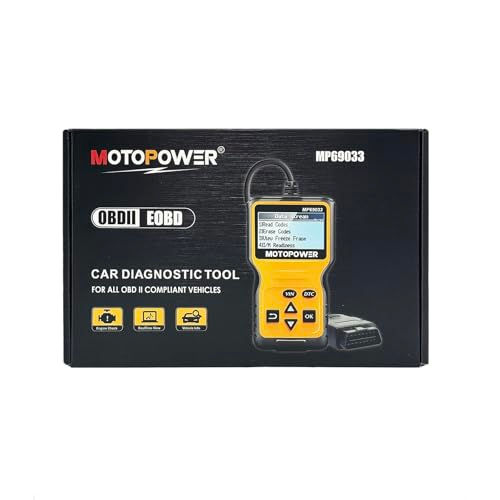 Multi-Functions - It's a practical multi-function OBD2 code reader which helps you determine the cause of the check engine light coming on, quickly read and remove diagnostic trouble codes, read live data & hard memory data, view freeze frame, I/M monitor readiness and collect vehicle information. Instead of taking car to mechanic shop, you can use it to check the trouble code and show code definition by yourself. Wide Compatibility - Supports 9 protocols compatible with most 1996 US-Based, 2000 EU-Based and Asian cars, light trucks, SUVs, as well as newer OBD2 and CAN vehicles both domestic and foreign. Check compatibility with your vehicle model before purchasing. It can also be used for some motorcycle OBD2 system diagnosis. (Note: an additional specific adapter cable is needed. not included with this device) 2.8" LCD Display & Multi-language - Designed with a clear 2.8" LCD screen (128 x 64 pixels) - white backlight and contrast adjustment. No need any battery or charger, OBD reader gets the power directly from your vehicle through the OBDII Data Link Connector. It also supports 6 languages - English,German, Dutch, Spanish, French and Italian. This scanner is enjoyed and highly recommended by the customers worldwide. Compact Design & Easy to Use - It weighs about 12 ounces and measures 6 x 2.75 x 0.9 inches. Equiped with a 2.5 feet long heavy duty cable and the standard 16-PIN OBD connector. 6 buttons for quick operation. The plug and play design makes it user-friendly. Even if you don't have much technical knowledge, you can operate it without any hassle. "Accurate & Fast - Different with other similar scanners, the MP69033 scanner use the brand new ARM micro processor to make sure the ultra high accuracy and fast speed. With the excellent performance of the micro processor, the detailed real-time engine data can be detected and displayed on the screen in seconds. Get codes, fix the problem and turn off the CEL. If you just need a code reader to check your car,