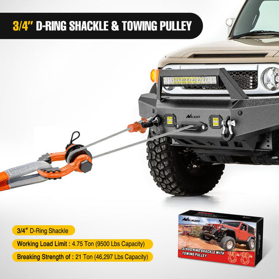 Nilight 3/4" D Ring Shackle with Towing Pulley 2 Pack 4.75 Ton (9500