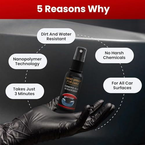 Product DescriptionSpecification: Name: Nano Car Spray Net content :30 ml/120ml Shelf life: 3 years Drying time: 3 minutes Package Includes: 2/3/5 PCS Nurafix Nano Car Spray 2 PCS Sponges Note: 1.Due to manual measurements, please allow slight measurement deviations. 2.Due to the different display and lighting effects, the actual color of the item may be slightly different from the color displayed on the picture. Nurafix Nano Car Spray: Nurafix nano scratch remover advanced nano car scratch repair spray utilizes nano-ingredients to effectively fill gaps and conceal scratches Fast Scratch Repair: Leveraging cutting-edge nanotechnology, nurafix car spray efficiently removes scratches by flawlessly refilling them with nano polymers and sealants Gloss Finish: The advanced nanotechnology formula forms a protective layer on the surface of your car for months, providing a long-lasting shine Durability: Nurafix car nano repair spray repairs unwanted scratches, scuffs and swirls while restoring the shine and gloss of your car. And makes your car oil-proof, hydrophobic and scratch-resistant Multiple Uses: Nurafix Nano Car Spray Is Suitable for All Surfaces Such as Cars, Boats, Motorcycles, Rvs, Atvs, Paints, Plastics, Glass, And More