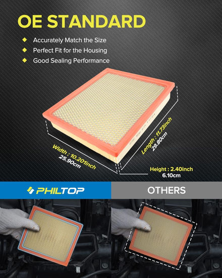 [Vehicle Fitment]: Compatible with 2014-2022 Toyota Sequoia (5.7L); 2018-2022 Tacoma (3.5L); 2013-2014 Toyota Tundra 4.0L; 2013-2019 Tundra (4.6L); 2013-2021 Toyota Tundra (5.7L) [High efficiency filtration]: Philtop air filters have a very high filtration efficiency, typically over 99.6%, ensuring that the engine draws in clean air. This prevents engine wear and optimizes performance [Improved Fuel Economy]: Cleaner intake air improves the efficiency of the fuel combustion process, which improves fuel economy and reduces emissions. A well-maintained air filter is critical to environmental protection and economical driving [Installs in 5 minutes]: OE design for direct installation. No special tools or modifications required. Self-installation is easy and convenient [Note]: Check if the air filter matches your vehicle by using the fit filter box and we recommend changing your air filter every 10000-12000 miles, or 5000-6000 miles if always driving in dusty or damp conditions