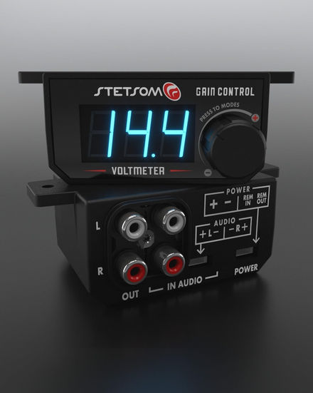 Stetsom 4in1 Universal Bass Knob Gain Control + Voltmeter + On/Off Switch + High to RCA input converter, Blue LED Display, One Touch On/Off Display, Continuous Touch On/Off Amplifier 4in1 Product: 1) Bass Knob Gain Control, 2) Built-in Voltmeter, 3) On/Off Amplifier Switch, 4) High to RCA input converter The Stetsom Gain Control was developed with all the essential features you need to control your audio system right at your fingertips, very convenient. Stetsom precision Built-in Voltmeter. It comes with a blue LED display that you can turn on and off with just one click on the level knob whenever you feel necessary Very convenient feature On/Off Amplifier Switch, you will be able to connect the remote wires from your amplifier to the Stetsom Gain Control and conveniently turn your amplifier On and Off with a simple continuous hold click on the level knob As if that was not enough, Stetsom can offer you even more. Besides the bass knob, voltmeter, and remote on/off features, the Stetsom Gain Control can also be used as an audio input converter for car audio factory players that do not support RCA connections.