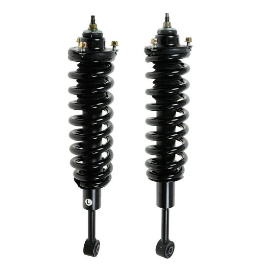 2 Piece Strut & Spring Assembly Set Kit Includes (1) Front Driver Side Strut & Spring Assembly (1) Front Passenger Side Strut & Spring Assembly Fitment Compatible with: 2005-15 Toyota Tacoma Pre Runner Rear Wheel Drive Front Driver & Passenger Side Compatible with: 2005-15 Toyota Tacoma Base Model 4 Wheel Drive Front Driver & Passenger Side Compatible with: 2010-23 Toyota 4Runner without Kinetic Dynamic Suspension KDSS Front Driver & Passenger Side Compatible with: 2003-09 Toyota 4Runner without X-REAS Suspension System Front Driver & Passenger Side Compatible with: 2007-14 Toyota FJ Cruiser Front Driver & Passenger Side Compatible with: 2015 Toyota Tacoma TRD Pro 4 Wheel Drive Front Driver & Passenger Side Product Attributes Quantity: 2 Piece Product Features Loaded Struts: Pre-assembled application specific design Application Specific Design: No modifications necessary Matched Pair: Improved comfort and extended service life Restored Performance: Reduced body sway and vibration Item Details TRQ fully loaded shocks and struts are manufactured using premium raw materials and calibrated to restore original ride comfort. TRQ shocks are fully loaded featuring a pre-loaded bearing plate, upper and lower spring isolator, upper spring seat, coil spring, boot kit, and premium strut. TRQ recommends replacing your shocks or struts in pairs to ensure even wear of components and improved ride comfort. All products are fit and road-tested in our Massachusetts R&D facility to ensure we deliver on our promise of Trusted Reliable Quality. Reference Numbers Gabriel: G57133, G57134 KYB: SR4130, SR4131, SR4528, SR4529 Monroe Shocks & Struts: 171371L, 171371R, 181371L, 181371R MOOG Chassis Products: ST8608L, ST8608R Toyota: SR4119, SR4120, SR4130, SR4131 Unity Automotive: 11563, 11564 Direct Fit, OE Replacement Suspension Strut and Coil Spring Kit Kit Includes: (1) Front Passenger Side Strut & Spring Assembly; (1) Front Driver Side Strut & Spring Assembly Vehicle Specific: Check fitment information in the listing for compatibility Aftermarket Reference Number(s): 11563,11564,171371L,171371R,181371L,181371R,SR4130,SR4131,SR4528,SR4529,ST8608L,ST8608R