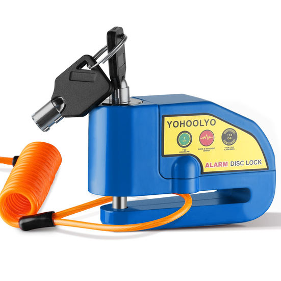 (Make Thieves Fear Anti-theft Alarm Lock) YOHOOLYO Alarm Disc Lock is a practical solution for bikers to protect their beloved motorbikes or bikes while parking outside or at home (Crash-resistant Disc Lock) This disc brake lock is constructed with forged stainless steel and easy to lock with one-press operation,just push down the button with a“Beep”sound into alarm status (Waterproof 110 DB Alarm Disc Lock)Up to 110 db alarm will automatically activate upon sensing any vibration or shock. With waterproof function,keep working in rainy days and never get rusty (Double Assurance Disc Lock for Vehicle) It comes with two keys, it is ideal for motorcycles, bicycles, scooters and any vehicle where there are holes or spokes on a wheel (Sustainable Two Set Batteries and Portable Lock) 6 internal batteries and 6 back up for longer use. An Allen wrench to disassemble the lock and carry pouch for storage included.2 pcs security keys for every different lock with well-packed box